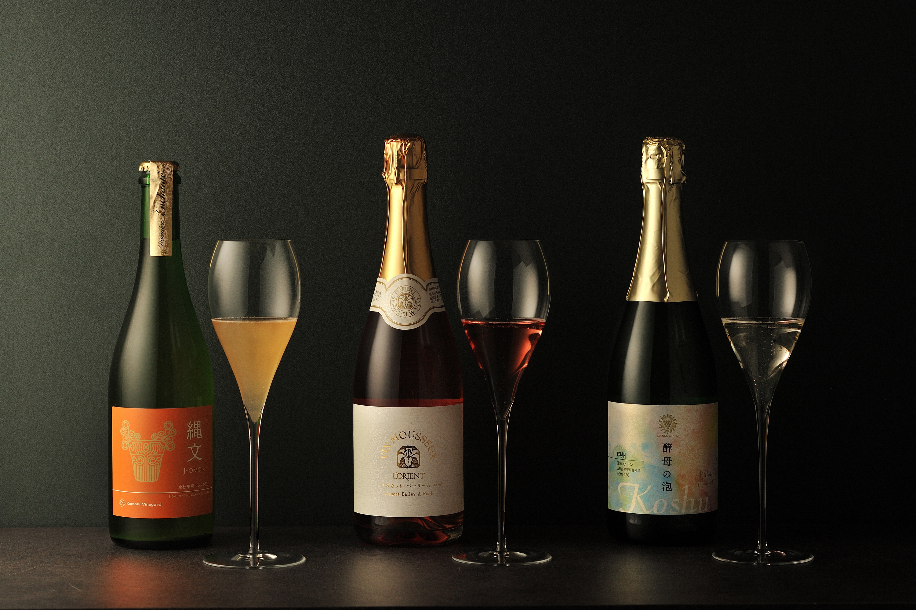 山梨県産の白、ロゼ、オレンジの3種類のスパークリングワインをご用意しています。山梨のテイストを味わいながら滞在のひと時をお楽しみください。